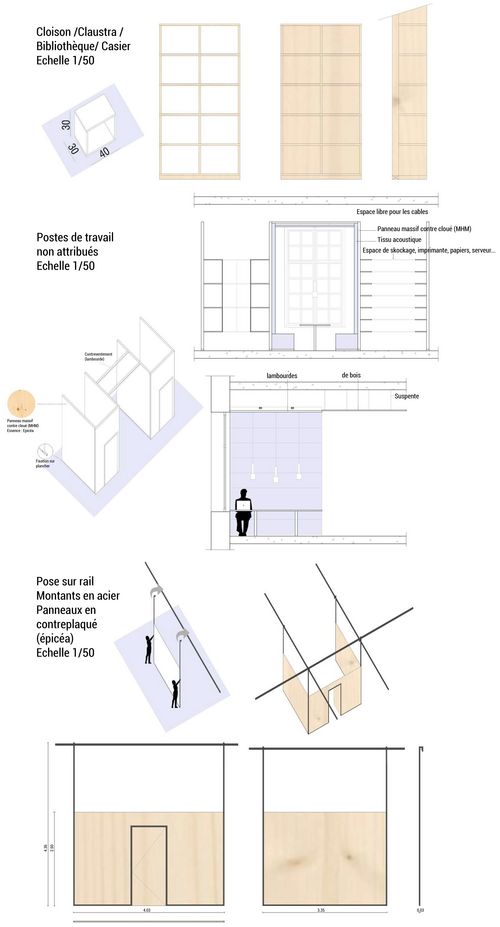 Coupe pavillon Sud-Ouest : Postes de travail non attribués