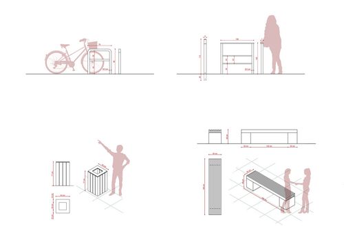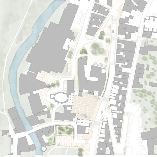 En créant un lien entre les places publiques existantes et le parcours touristique, le choix du périmètre d'intervention a été basé sur une continuité : des endroits clés liés à la route et qui sont aussi potentiellement connectés entre eux et à la rivière.