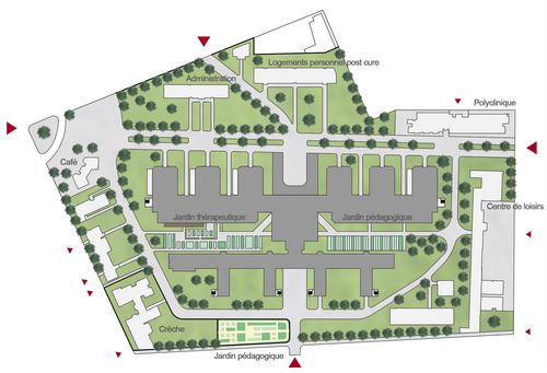 Il a semblé important pour cette reconversion de garder un lien avec la fonction originelle du bâtiment, tournée vers les soins et la guérison. C'est pour cette raison que le projet propose d'implanter dans le bâtiment principal Nicolas Beaujon un centre de réhabilitation post cure, où les personnes ayant souffert d'une longue maladie pourraient venir se ressourcer.