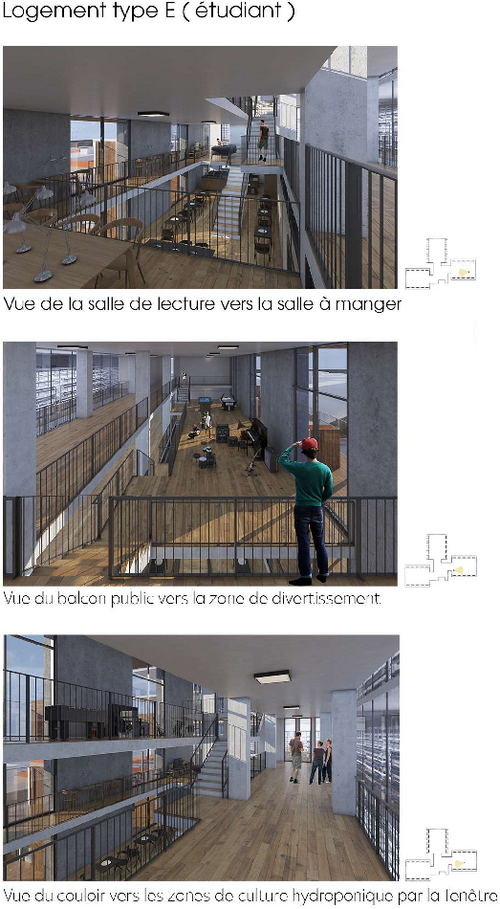 L'aménagement de l'espace de culture existe intimement lié aux espaces de la vie quotidienne : il est situé à côté des principales voies de circulation au centre (l'ascenseur, les escaliers extérieurs), se trouve au sein des trois ailes des immeubles, même les petites plantes en pot sur les balcons ou jardins d'hiver, ont pour but d'augmenter l'interaction entre l'agriculture et les habitants. Tous les balcons sont équipés des modules multifonctionnels qui visent à encourager les activités en dehors grâce à la capacité d'ajustement de la hauteur en fonction du souhait de l'utilisateur : 45 cm du sol si vous souhaitez l'utiliser comme un banc, 75 cm du sol si vous souhaitez l'utiliser comme un bureau, 105 cm du sol si vous souhaitez l'utiliser comme une table debout, ou étagère pour placer des pots.