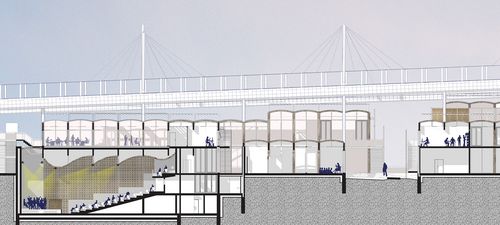 Menacés par le recul de la ligne de côte, ils mettent en danger le point névralgique des mobilités de l'île et avec eux la connexion île continent. Ce projet de PFE est donc un projet de pérennisation et de dynamisation de la pointe sud de l'île. Le concept majeur est de démolir le talus sur presque deux-cent mètres, construire un nouveau pont à la suite du premier et qui rejoindra le nouveau début du talus. Afin d'exploiter l'espace dégagé en dessous de l'ouvrage de génie civil, des bâtiments organisés en peigne se glisseront sous celui-ci.