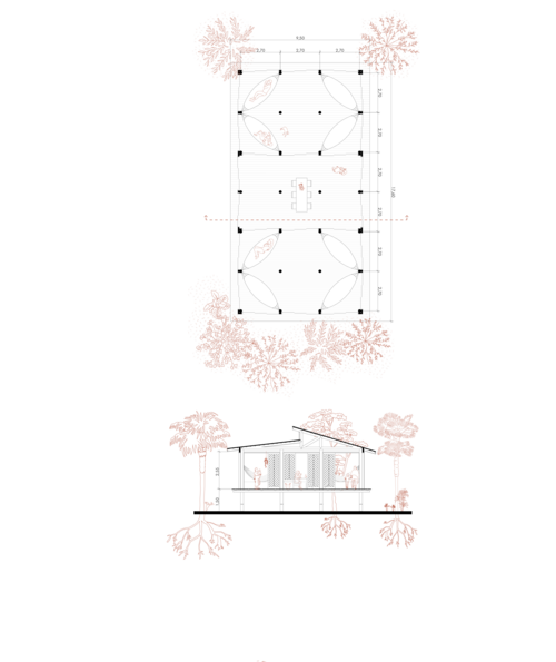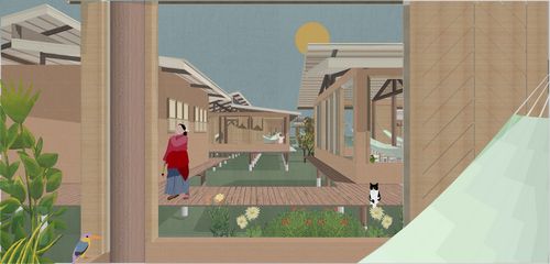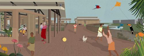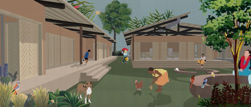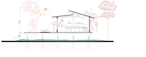 Le projet consiste à concevoir un habitat digne respectant la culture et la tradition du peuple Warao en ce lieu. Le programme architectural de ce projet vise à proposer de l'habitat, des écoles, un atelier et de l'agro-foresterie, avec le but d'assurer des ressources, de la représentativité et des droits à cette population. Les 6 hangars existants sur site seront réhabilités. Les différentes typologies d'habitations proposées sont à proximité de l'eau , en suivant le vent prédominant, la passerelle et l'ensoleillement. La passerelle est le cœur du projet, c'est l'endroit de vie et l'espace de partage, comme on le trouve dans l'habitat traditionnel. Le cuisines sont au bord du cours d'eau, cela permet notamment l'évacuation de fumée, et donne la possibilité de cuisiner à l'intérieur ou à l'extérieur selon les besoins.