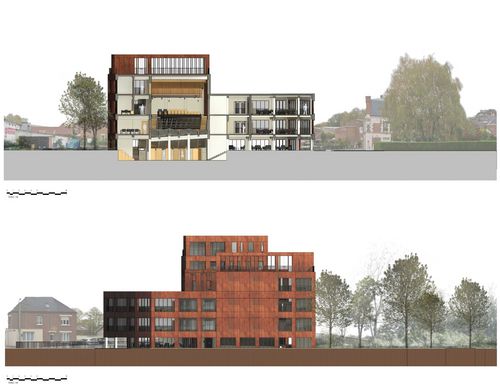 3.Séjourner, travailler et se détendre au " Moulin Damay " de Péronne Le " Moulin Damay " est situé à l'entrée de la ville de Péronne. Il fait la jonction entre la ville habitée et sa zone industrielle. Il donne un point de vue sur le fleuve en entrée de ville et une vue panoramique en hauteur sur les étangs. Nous avons souhaité conserver la totalité de la structure principale et atypique du Moulin afin de la révéler et de revaloriser ce qui est actuellement caché. Le Moulin possède une grande surface et des volumes particuliers comme avec l'ancien silo. Pour que la totalité de cet espace soit exploitée avec cohérence, nous avons recherché un programme adapté aux besoins d'une ville comme Péronne. Aussi, nous avons opté pour une programmation mixte qui comprend des hébergements, une salle de concert polyvalente dans l'ancien silo et des espaces de co-working.