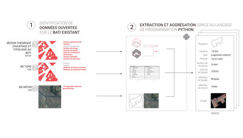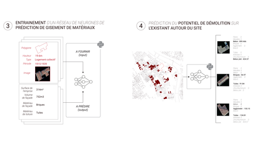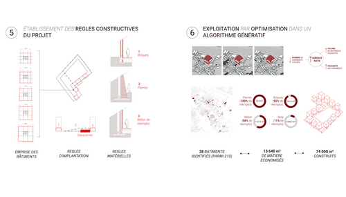 Sa conception se base sur des gisements de matériaux potentiels autour du site, prédits grâce à un algorithme entraîné à partir de l'Open Data local avec Python, un langage de programmation accessible et puissant.