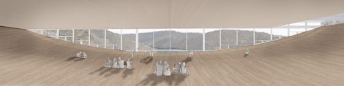 Ce bâtiment peut être parcouru du haut vers le bas pour ensuite redescendre de l'autre côté, où être seulement franchit par sa toiture publique. Se développent de l'autre côté une promenade qui relie à la ville de Firminy et une autre qui redescend à fleur de la Loire pour rejoindre le projet du creux singulier, plus en aval.