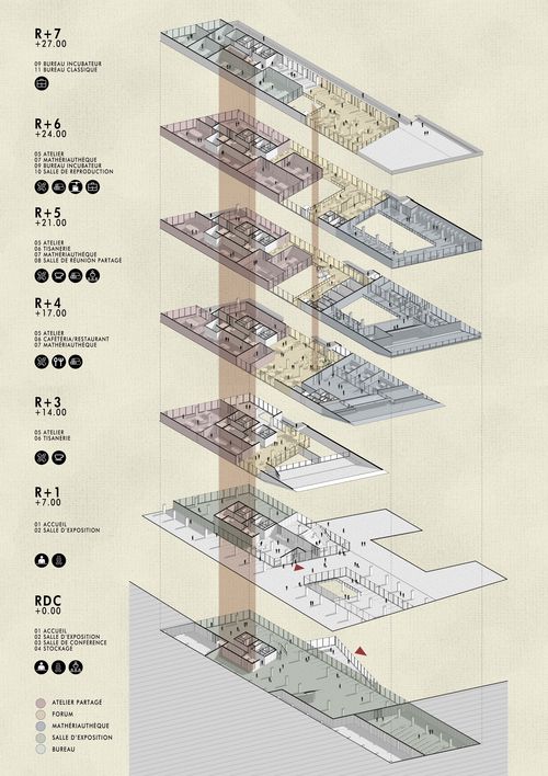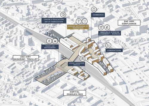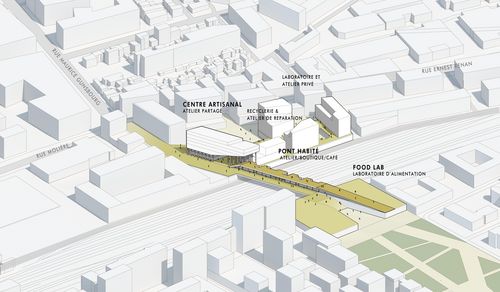 Afin de retisser la continuité urbaine entre les quartiers séparés par voies ferrées en désenclavant le terrain délaissé, le projet porte un intérêt à reconstituer les ateliers artisanaux et à rétablir l'identité d'Ivry en tant que la " Ville fabricante " en ré-éclairant l'esprit de la " fabrication ", qui était un moteur principal de l'expansion de la ville. Le projet vise donc à créer une communauté autour de la fabrication en explorant les différentes formes dans la ville : Parc de 3ha avec le bassin biotope, Food Lab, centre d'éducation, centre d'artisanat, laboratoire, recyclerie et ateliers professionnels et participatifs. Le projet se compose d'un pont habité couvrant des ateliers et des boutiques artisanales qui jouent un rôle de liaison entre les terrains fragmentés en prolongeant les programmes de passage artisanal.