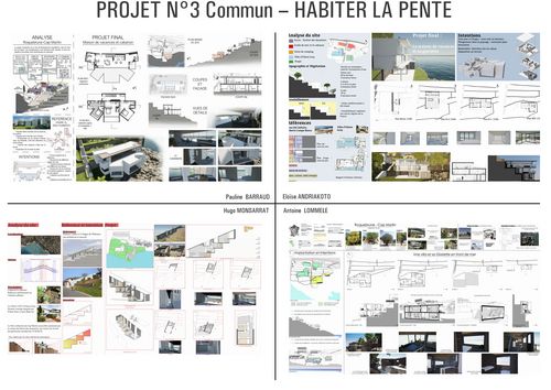 L'un concernant la conception d'un espace scénographique pour les journées portes ouvertes et l'autre consistant en l'analyse spatiale d'un espace architectural visité.