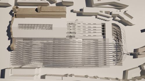 Cet espace crée une interconnectivité entre les différents modes de transports, dont les automobiles individuels, les mobilités douces, et le train Hyperloop.
