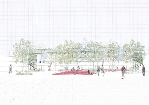 Cependant, la restructuration de cet édifice comporte son lot de défis. D'une part, situé sur un site contraint et fracturé par les voies de circulations automobiles, il est nécessaire de réinventer des accroches urbaines pour restituer l'espace public à ses usagers. En parallèle, on mise sur l'édifice en lui-même pour devenir une " machine " à produire des idées et du beau. A terme, l'objectif est de créer un équipement hybride fédérant des espace d'ateliers et de travail avec des équipements ouverts aux habitants de Saint-Ouen.
