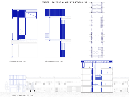 Cet intérêt a pu générer un processus de conception particulier qui a souhaité travailler la dimension structurelle et mobilière des édifices avant même l'organisation programmatique. Il était question de réfléchir à un système ouvert qui puisse s'adapter à différents usages et concepts dans un site de production en évolution permanente.