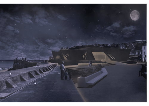 Situé en front de mer, sur la place centrale de la commune, le futur musée constitue un lieu phare de la ville et une composante urbaine majeure. La place du 6 Juin 1944, aujourd'hui dédiée intégralement au stationnement, deviendra avec le nouveau musée un espace piéton. La commune a déjà anticipé le report du stationnement sur des parkings communaux en amont du littoral afin de permettre la mise en valeur de la qualité paysagère remarquable du site. La restructuration des abords du musée vise à: