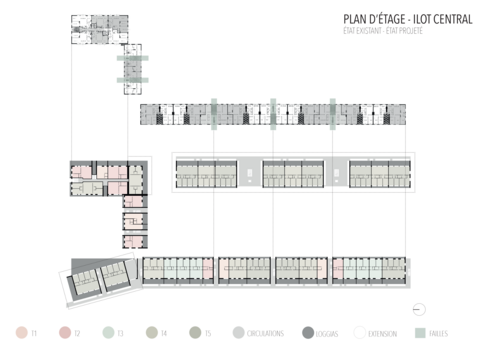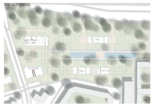 - Plan de Rez-de-chaussée incorporé dans le site / travail de l'ilot central