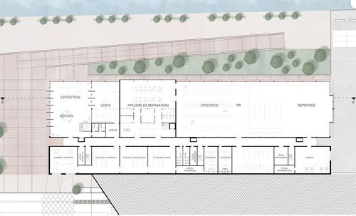 Notre ambition est de penser la recyclerie comme une nouvelle typologie de bâtiment à intégrer à la ville. À notre sens, l'équipement logistique de demain ne doit plus être considéré comme une nuisance mais comme un service nécessaire à la vie des habitants et au cycle de la ville, au même titre que les équipements publics. C'est pourquoi, cette extension se conçoit comme un bâtiment mixte intégrant à la fois une activité industrielle de réemploi, une activité de recherche et de développement sur la question du traitement des déchets mais aussi des activités publiques de sensibilisation et prévention. Les Ressources de l'Ourcq viennent alors renforcer la création de synergies entre les différents éléments composant la ville afin de proposer de nouvelles pistes de réflexion répondant d'avantage aux enjeux actuels.