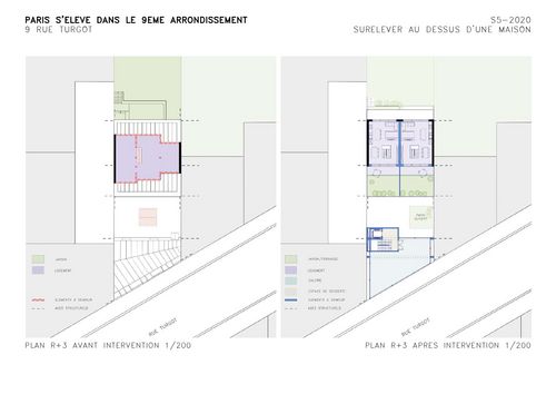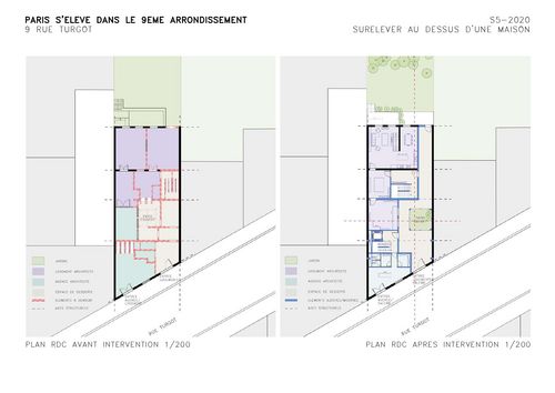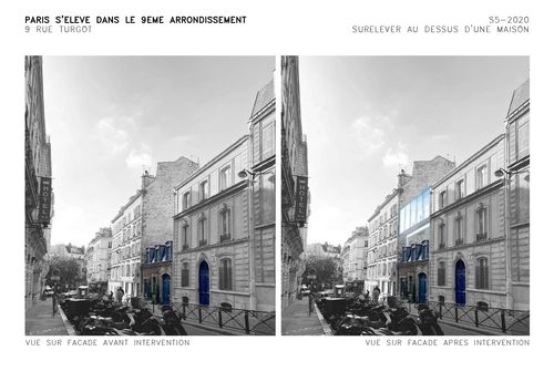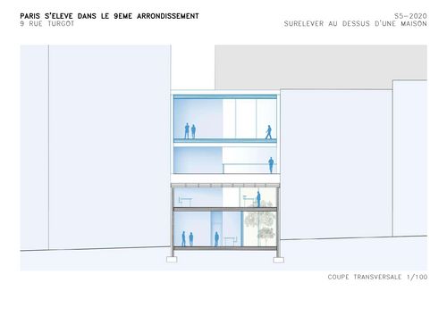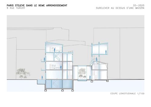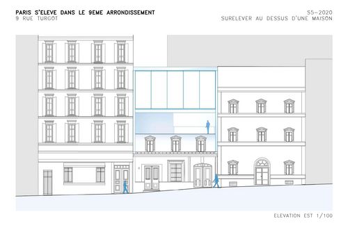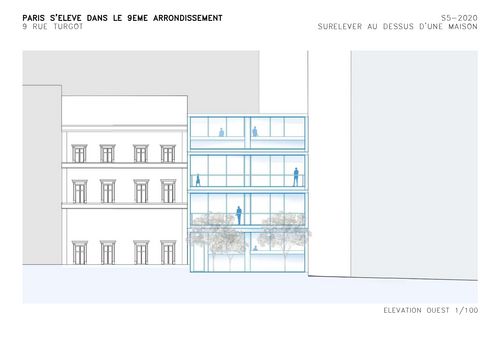 Surélévation d’une maison du 9è arrondissement, 9 bis rue Turgot.