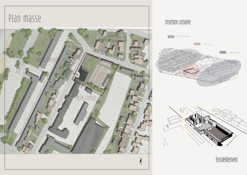 Le projet proposé aux étudiants consiste en la conception d'un gymnase multi sport dans l'enceinte du collège Henri Sellier à Bondy (93), inscrit dans un environnement péri urbain hétérogène.