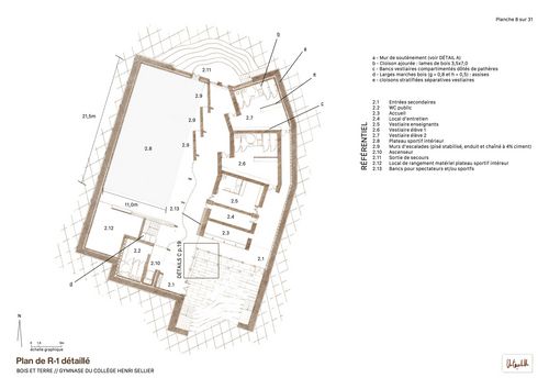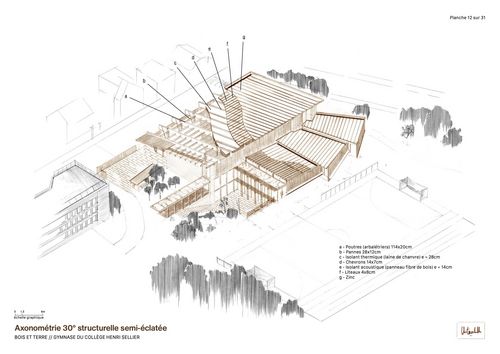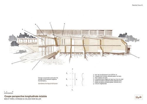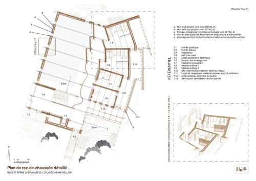 Ce programme permet de donner les premiers réflexes conceptuels pour la réalisation d'équipements publics : image institutionnelle, valeur d'usage (rapport entre locaux avec contraintes dimensionnelles, acoustiques d'éclairement, différentes - intime/public) et les flux (chaussures de ville / de sport). Cet équipement a aussi l'avantage d'associer la conception à la structure (charpente bois et son design - béton...) et d'introduire les notions de conception bioclimatique (rapport au soleil, au vent, aux précipitations) et l'usage des espaces extérieurs. Les liaisons fonctionnelles avec le collège existant sont à déterminées.