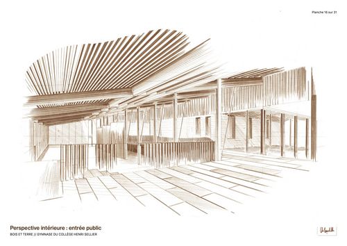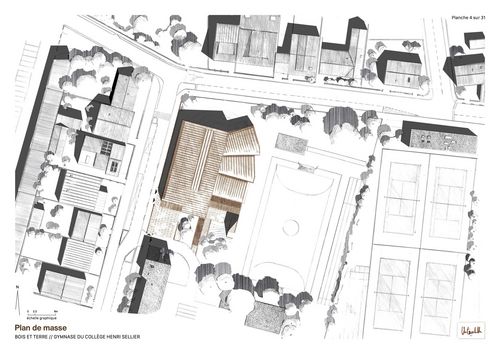 Le projet proposé aux étudiants consiste en la conception d'un gymnase multi sport dans l'enceinte du collège Henri Sellier à Bondy (93), inscrit dans un environnement péri urbain hétérogène.
