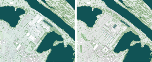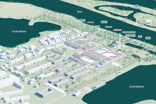 L'hétérogénéité de cette ville constitue cependant son plus grand potentiel, que le projet révèle par la transformation de la friche industrielle de Gassicourt en lieu de réconciliations. Par la création d'un parc connecté aux berges de Seine, le projet instaure une remédiation écologique qui permet à l'écosystème régénéré de se faire lieu de vie, de culture et de loisirs. La réhabilitation du bâti industriel, au cœur du projet architectural, pose des questions aujourd'hui fondamentales comme celle de la valeur écologique et sociale de la conservation du bâti et son adaptation pertinente aux usages contemporains.