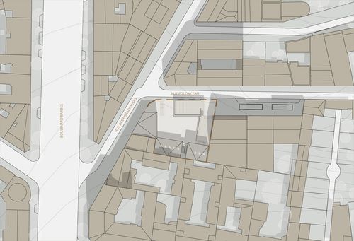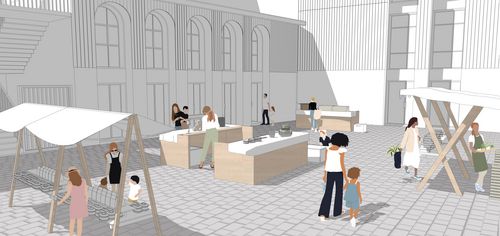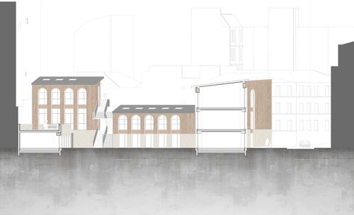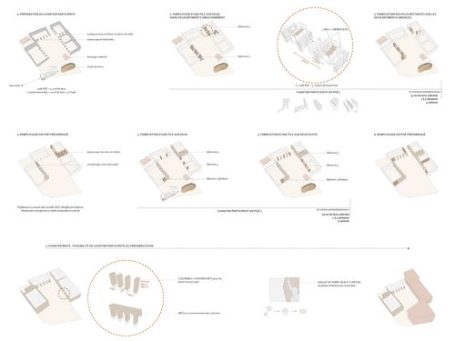 La présence de deux patrimoines majeurs à proximité est intéressante à mobiliser dans le cadre du projet : le premier étant l'hôpital Lariboisière en travaux, générant de la terre excavée et de la pierre de taille ; le deuxième étant la halle SNCF Ordener-Poissonniers, aujourd'hui désaffectée, pouvant devenir temporairement un atelier de préfabrication de matériaux en terre crue. L'usage de ces ressources permet de faire construire par les habitants un bâtiment à vocation commune, valorisant le partage, sur l'une des dernières friches urbaines du quartier, tout en redonnant vie à un matériau ancestral.