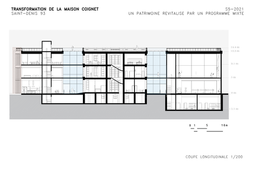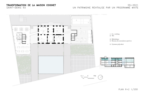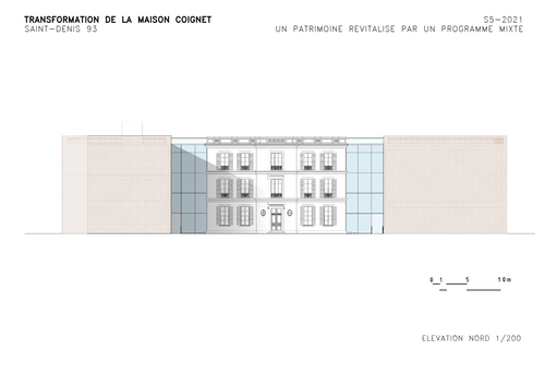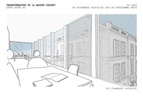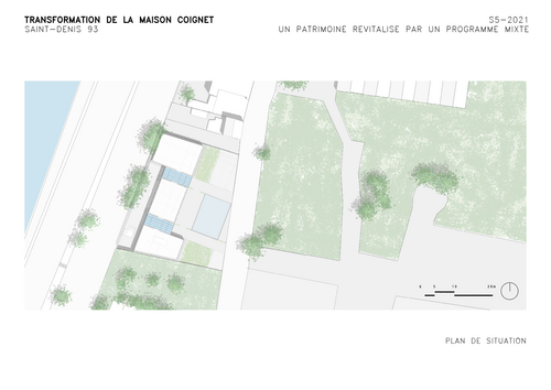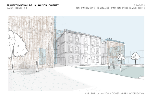 Ce projet s’inscrit dans le domaine de la transformation de l’existant. Il se situe dans le quartier Pleyel-Confluence à Saint-Denis (93200), un quartier en pleine transformation et dynamisation. Il est question de restaurer la Maison Coignet : la première maison en béton de pisé. En 1853, François Coignet décide de créer cette Maison dans un but démonstratif. Le projet consiste en la réhabilitation de la maison pour en faire un centre culturel et sportif (SESC).