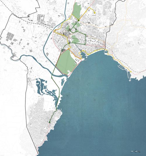Fréjus est une ville de la Côte d'Azur. De ce fait, elle fait face à des enjeux très particuliers à plusieurs niveaux. Notamment la gestion des afflux touristiques ou encore la connexion avec son littoral. Ce projet de fin d'études traite un projet urbain et un projet architectural qui s'implantent sur le site de la Base Nature, qui est le site de l'ancienne base aéronavale de la Marine. Se situant sur le littoral fréjusien, c'est un site très privilégié de part sa localisation géographique entre ville et nature et le long de deux axes majeurs urbain, mais également très mal exploité par la ville actuellement. Ce projet vise à renouveler une partie de la ville qui a un potentiel de développement urbain important, tout en renforçant un des axes majeurs de Fréjus (le boulevard de la mer). S'implantant à l'extrémité du boulevard de la mer, le projet architectural est une ouverture sur la mer depuis ce boulevard en créant un cadrage sur celle-ci le jour, et faisant office de phare la nuit. Le bâtiment accueille un centre de recherche et de sensibilisation sur la pollution de la mer Méditerranée et la biodiversité locale.