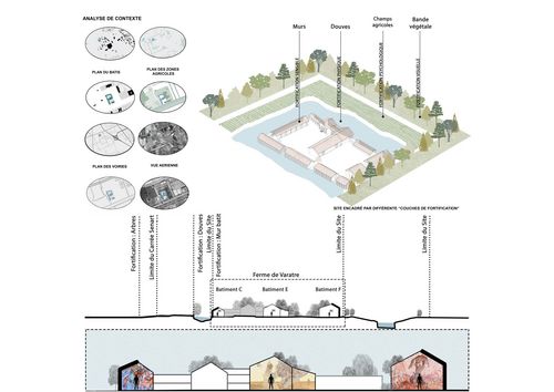 Le projet consiste à transforme la ferme en hôpital psychiatrique. Le site est divisé en plusieurs couches considères comme couches de fortification a plusieurs niveaux.
