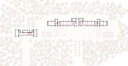 Le premier acte de projet se fait à l'échelle du site. Des stratégies localisées sont déterminées afin de réintégrer les trois édifices du préventorium dans leur territoire et dans leur paysage.