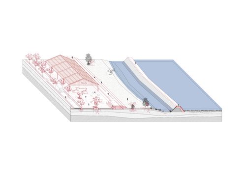 L'architecture de protection édifiée au cours des siècles est savante car elle compose localement en fonction des éléments naturels. Il y a presque autant de forme de digues que de situations et c'est de ce sujet que le projet va traiter. Il s'agit de requestionner cette architecture et de procéder à sa transformation pour la rendre plus opérante face aux changements climatiques. Pour cela, je me suis intéressée à trois situations très différente qui sont soumises au risque de submersion et qui pourraient définir les trois grands systèmes de protection qu'il existe sur le territoire.