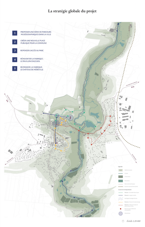 Comment intervenir à Méréville sans déstabiliser le " génie du lieu " qui opère dans cet endroit si singulier ?Quelle position adopter face au patrimoine architectural classé aux Monuments Historiques ?