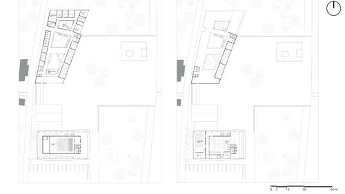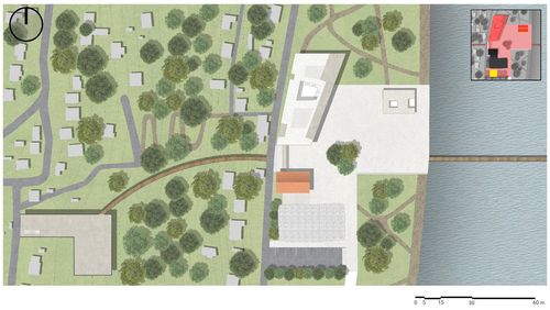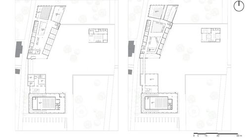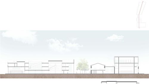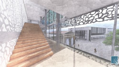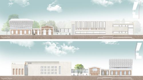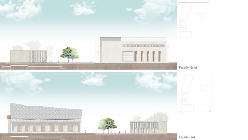 Notre fil d'Ariane au long de ce projet a été de rassembler les essonniens dans un lieu convivial, chargé d'histoire, à la fois culturel et lieu d'échange. L'intention première du projet est de créer un axe d'Ouest en Est pour faire un lien entre le plateau et la parcelle des Bas-Vignons mais également entre les deux rives de la Seine. Notre stratégie d'intervention s'est donc basée sur la conservation de ce qui était jadis une papeterie pour y créer un auditorium qui vient profiter pleinement des atouts esthétiques de l'existant en proposant une circulation périphérique. Une extension en verre avec une double peau en béton vient s'articuler au-dessus de ce qui était autrefois la papeterie pour venir accueillir une salle de théâtre et un restaurant. Cette coque possède un motif qui vient traiter la lumière à l'intérieur du bâtiment. Le programme associé à l'éducation est situé quant à lui dans un bâtiment neuf qui vient s'articuler avec l'ancien. L'usine de pompage sera, quant à elle, détruite pour y créer un café entièrement ouvert au public qui constitue un point d'ancrage pour les personnes venant de la passerelle.