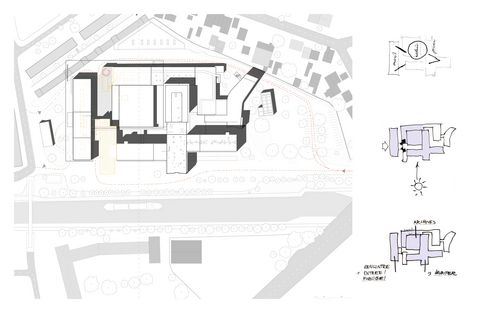 Pour ce faire, deux bâtiments situés au nord et à l'est du complexe sont réhabilités et reliés par une ouverture vers une cour intermédiaire pour une nouvelle communication.