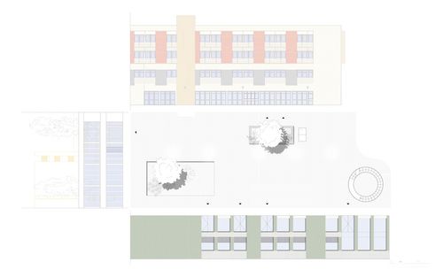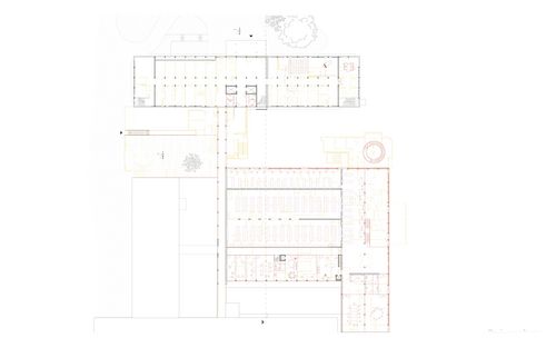 Il s'agit d'une part de l'ancienne Maternité, qui accueillera des activités temporaires, dans un plan très ouvert et flexible. L'autre bâtiment est le bâtiment plat situé à l'arrière, dans lequel de nouvelles utilisations ont été prévues selon la structure de l'existant. Il s'agit de salles de lecture, d'un entrepôt d'archives et d'usages facilement accessibles dans la cour, comme un café et une salle de projection.