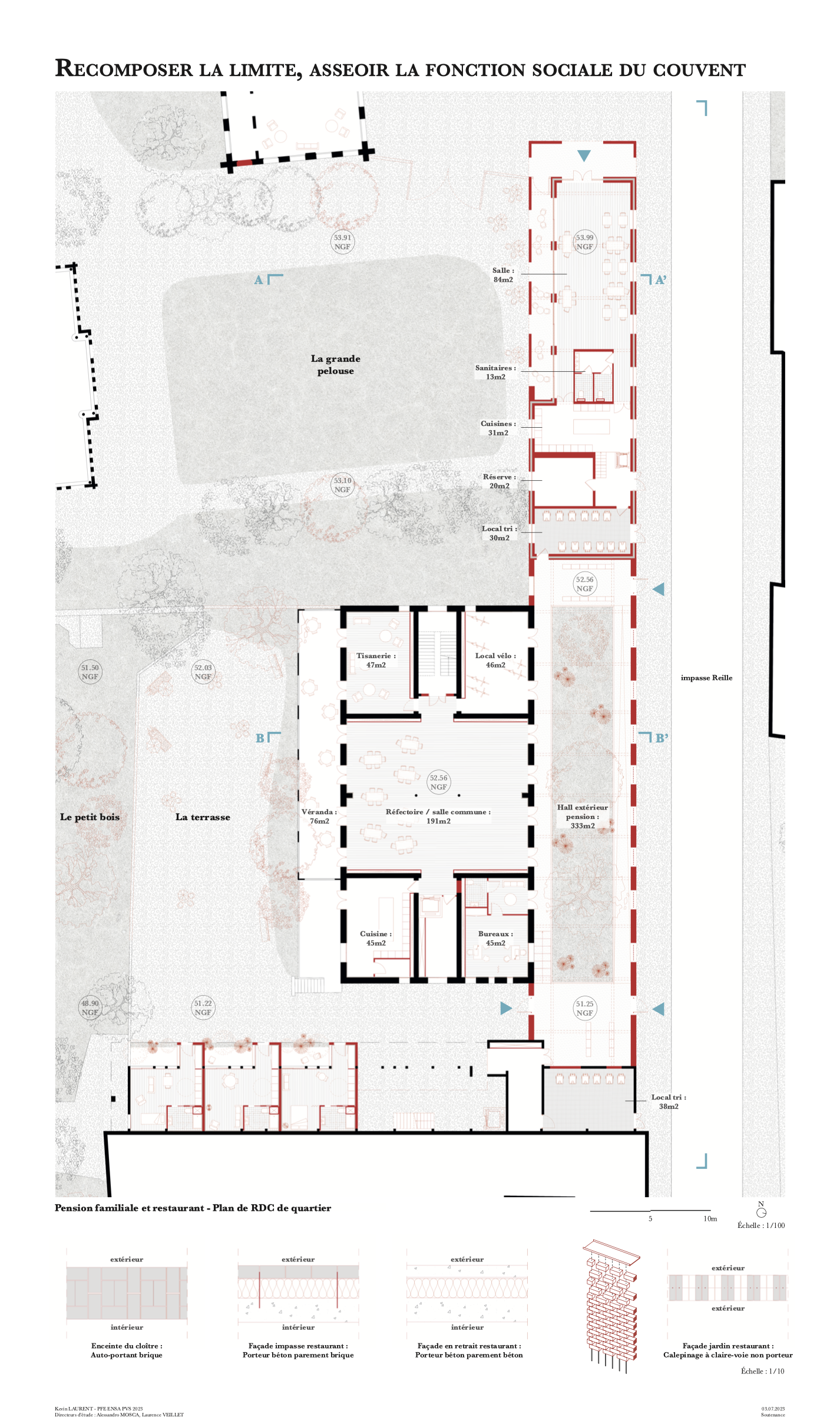 Ce projet de fin d'études propose de reconquérir ce cœur d'îlot de manière pérenne, en recomposant l'impasse Reille et en offrant un nouveau jardin public connecté au quartier. La désimperméabilisation renforce l'îlot de fraicheur du couvent, donné aux habitants.