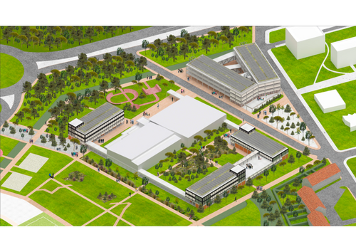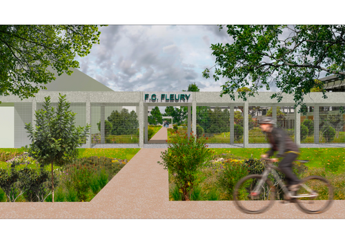 Du nord au sud, le projet renouvelle et simplifie la relation entre les deux centres de Fleury-Mérogis en proposant un parcours équipé. D'est en ouest, le projet retisse les continuités écologiques entre les deux parties du massif boisé. Le projet architectural s'inscrit au coeur de ce projet urbain et son écriture amplifie les thèmes que nous avons développés. Le langage géométrique fait apparaitre la structure et donne une échelle architecturale et une taille humaine à ces programmes.