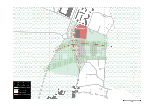 A la croisée du cardo et du decumanus : une plaine polluée qui devient naturellement le lieu du projet.