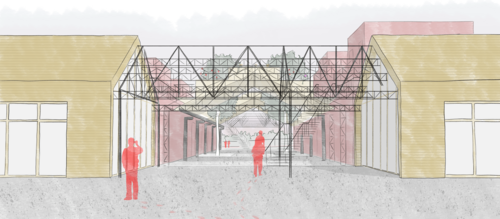 Ce projet de fin d'études, présente en parcours " recherche ", interroge la place des traces mémorielles sur le site Euroshelter, dernière usine industrialo-militaire à transformer au sein de la ZAC de la Courrouze à Rennes.