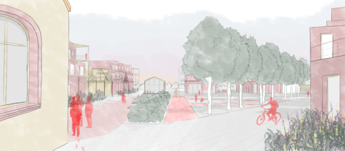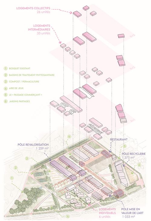 Entre conserver la mémoire des lieux et laisser place à sa future vie, le site est voué a devenir un pôle socio-économique et un cœur de quartier. L'enjeu est, ici, de créer un équilibre entre respect de l'identité industrielle du site - ses traces permanentes - et création d'un lieu de vie, révélé par les traces éphémères et temporaires de la mémoire. Ce travail s'articule autour de quatre thématiques que sont les traces mémorielles, le ré-emploi, le paysage végétal et urbain ainsi que la participation des acteurs.