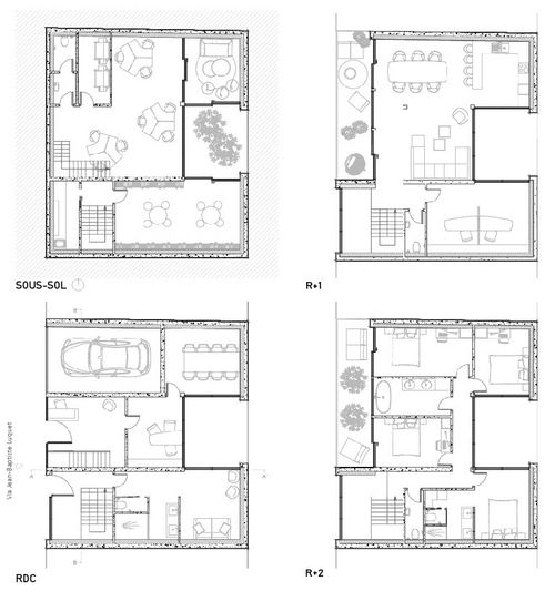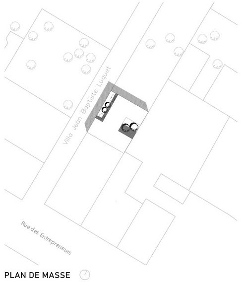 Le projet proposé aux étudiants consiste en la conception d'un logement familial individuel d'une surface habitable d'environ 280m² sur un terrain situé dans le 15ème arrondissement de Paris Le site urbain dense situé villa J.B. Luquet Paris 15ème , appartenant à la parcelle du 45-47, rue des Entrepreneurs Il s'agit d'utiliser les connaissances du fonctionnement du logement acquises dans un contexte urbain, de type (dent creuse) en réutilisant les bases constructives de la structure bois et en les extrapolant dans un contexte urbain dense qui impose la superposition Le projet s'inscrit dans l'une des thématiques retenues pour la 2ème année de licence dans le programme de l'ENSAPV (structure et matière) en s'attachant au programme de l'habitat sur un terrain existant, avec la volonté d'initier les étudiants à la pratique du projet sous certains de ses aspects opérationnels (méthode de travail, techniques de construction, insertion dans le réel, etc.), c'est à dire de rendre la réalité du construire moteur de la conception et non simple conséquence. Le projet l'occasion d'aborder les notions de valeur d'usage dans le logement avec ses premières règles normatives et techniques et de s'interroger sur la conception du logement d'aujourd'hui et de demain et sur la capacité de l'architecte à proposer des espaces modulables pour des besoins encore inexistants hier.