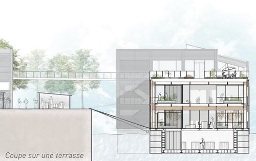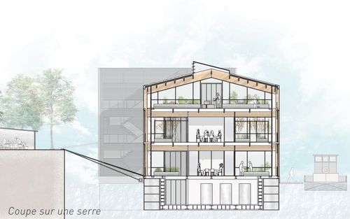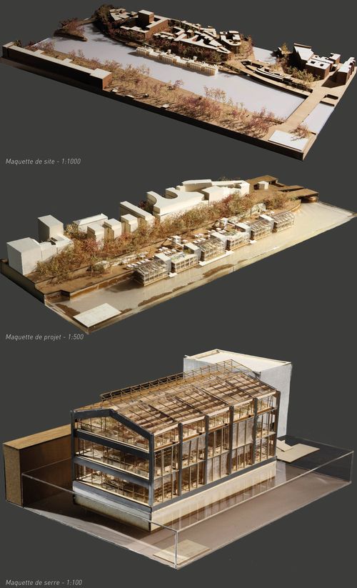 La typologie architecturale des serres, cherchant à faire entrer la lumière à l'intérieur se prête bien à l'intégration d'une activité productive, comme l'agriculture, en cœur de ville. Grâce à la transparence dont elle a besoin elle permet de montrer le spectacle de l'agriculture à l'intérieur, celui d'une agriculture qui fusionne avec la vie urbaine.