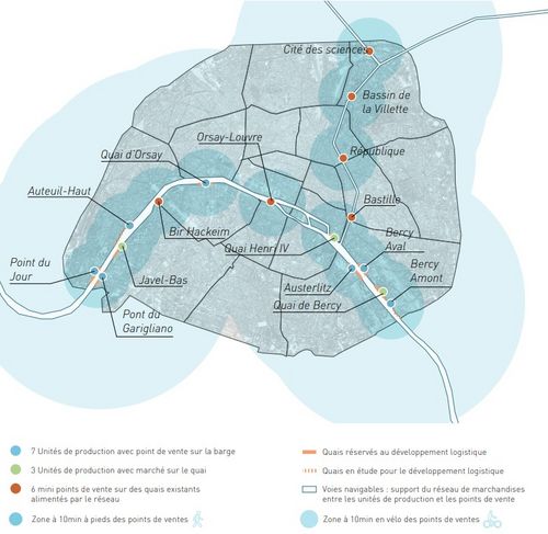 Ce projet de serres urbaines flottant sur la Seine est une proposition de réponse innovante aux enjeux de la ville de Paris en termes d'approvisionnement, de changements climatiques et de pression foncière. En s'insérant sur un fleuve en cœur de ville, l'objectif est de réintégrer dans la vie des habitants une activité qui a quasiment disparue des villes, l'agriculture et un territoire oublié, le fleuve. Le projet est pensé comme un réseau de serres, créant un maillage desservant toute la ville.
