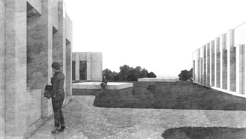Ce projet de fin d'étude se concentre sur la création d'un centre de création contemporaine à Meudon. Ce centre offre une succession d'espaces d'expositions dévalant la colline et offrant au fur et à mesure des vues dégagées sur Meudon et l'ouest Parisien. Il abrite également une menuiserie, un atelier de céramique, un studio son, un studio photo, une résidence d'artistes et un parcours végétal.