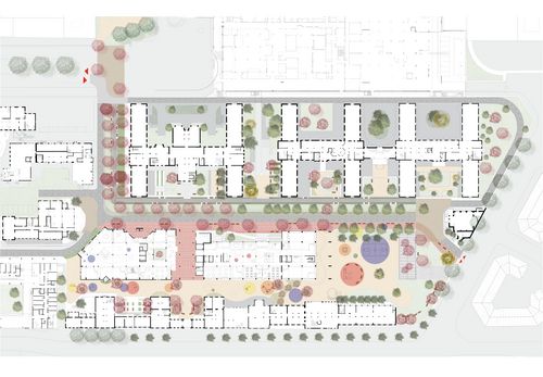 Plan du RDC 1/500, Renaturation du sol, cour de récréation et nouvelles plantations
