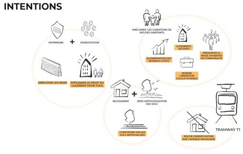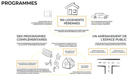 Reloger les habitants des structures informelles et précaires des Murs à Pêches sur le même territoire.