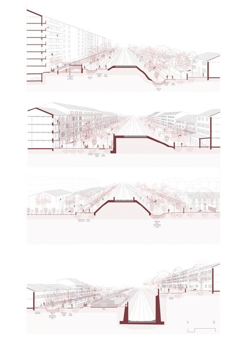 Ces infrastructures sont synonymes de fractures, d'insécurités, de nuisances sonores, de pollutions et pourtant elles sont indispensables au fonctionnement de la ville. Elles constituent également de véritables terrains remplis de potentiels : opportunités foncières, interfaces entre ville et infrastructures de mobilité, connectivité importante, constructions ou équipements réutilisables, ouvertures et vues lointaines sur la ville...