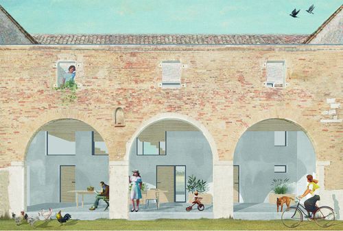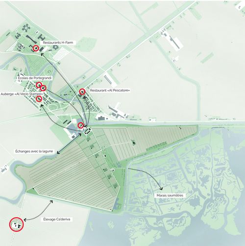 Cette intervention dans la zone rurale de Portegrandi a pour objectif d'ancrer la commune un peu plus dans son héritage, en imaginant une stratégie à l'échelle territoriale, puis en développant un projet paysager et architectural sur la zone spécifique des Marzi. La finalité du projet est de développer l'économie locale grâce à une diversification de son agriculture, qui endosse alors un rôle multifonctionnel. Culture, tourisme, environnement, paysage, ou encore alimentation : le domaine des Marzi offre de nombreux services qui améliorent la qualité de vie de l'espace rural qui l'entoure.