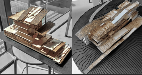 Projet architectural : Le projet architectural porte sur le réaménagement d'un ancien hôtel abandonné. Ma volonté a été de créer une rencontre entre le projet urbain et le projet architectural et donc les passerelles qui cheminent le long de la forêt viendrait fusionner avec la structure en béton du bâtiment existant, pour venir créer des coursives et la toiture du bâtiment.