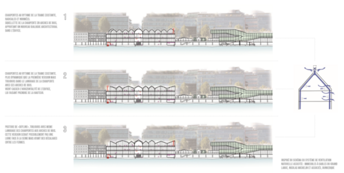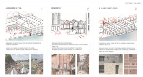 - propositions spatiales en termes d'espaces publics, d’usage, de limites et d'impact paysager ;