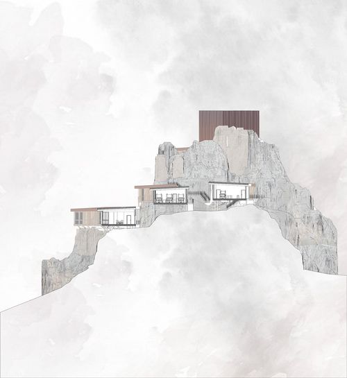 L'intervention architecturale sur le site de Roquefixade se veut la plus respectueuse possible, tout en conservant le message patrimonial passé de la ruine et de le transmettre aux visiteurs du site aujourd'hui.