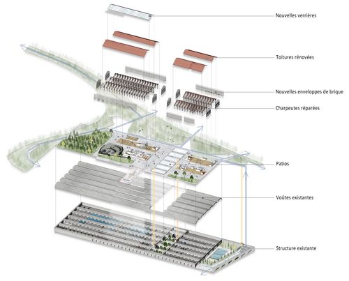 A travers le choix des documents, nous avons cherché à mettre explicitement en avant la diversité des solutions envisagées. Ces changements sont dus à une compréhension progressive de l'existant et ses données (structure, qualités spatiales, ensoleillement, matériaux exploitables, végétation à préserver).