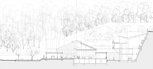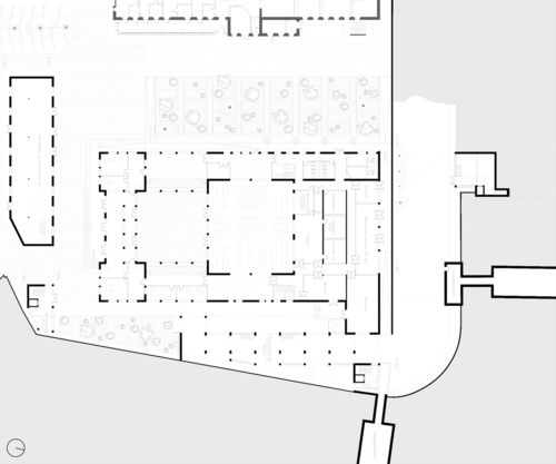 Cette partie du site étant propice au programme établi, le bâtiment Henri IV - historiquement les cuisines de l'hôpital - accueillera le restaurant social, et le long du grand mur de soutènement se situera la ferme verticale. L'idée du restaurant social est de réunir l'ensemble des personnes internes et externes au site autour de la nourriture, cette dernière provenant en partie du site. La ferme verticale permet de travailler non seulement une forme plus contemporaine de l'agriculture, mais aussi de formellement créer une relation entre le site et son extérieur en s'appuyant sur le mur de soutènement.